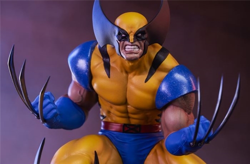 Canada’s toughest mutant is claws up and ready to tear down any enemy in his familiar blue and yellow suit. Unbreakable Adamantium claws project from his clenched fists as Wolverine crouches in a wide, firm stance. From the vivid costume color detailing to the metallic intricacy of his indestructible talons, every aspect is a testament to Wolverine’s enduring legacy.