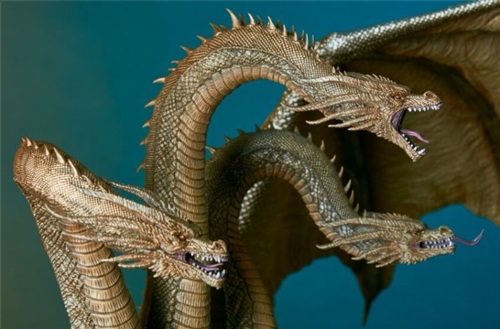 Ghidorah, the king who appeared in "Godzilla 2: King of the Monsters", is a monster known as "MONSTER ZERO", which invaded the earth from space billions of years ago, and later slept in the Antarctic ice. His three heads all have their own will and personality, and have powerful regeneration ability and the largest size in history. They can release a wide range of gravitational light attacks from the mouth, wings, and tail, and the surrounding environment will produce a typhoon-like attack. Rainstorm and lightning phenomenon.