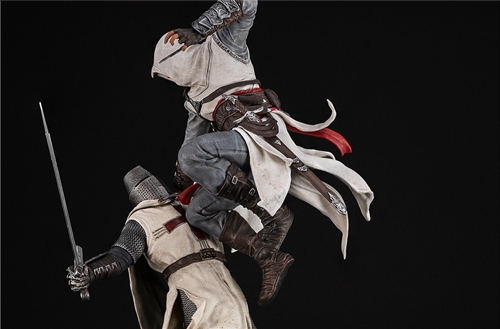 A quest to assassinate nine Crusaders ends here and now with our second Assassin’s Creed diorama. The Assassin's Creed®: Hunt for the Nine Sixth Scale Diorama features a heart-pounding dynamic pose, rendered with the detail and precision you’ve come to expect from PureArts collectibles. Altaïr appears to float midair, his knee landing upon Robert de Sablé’s chest, moments before his demise.