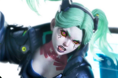 What if Rebecca and the rest of David's crew were recreated in the CG style of "Cyberpunk 2077"? This bold concept has been brought to life as a high-precision statue. Her small frame, bursting with raw emotion, blends the realism of the game’s design with the expressive style of the anime to create a figure full of intensity.