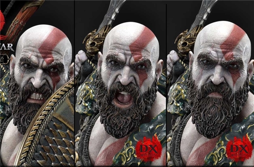 The Deluxe Version includes additional parts such as two alternate portraits, two swappable hands holding the Blade of Chaos and one swappable Leviathan Axe on the back.