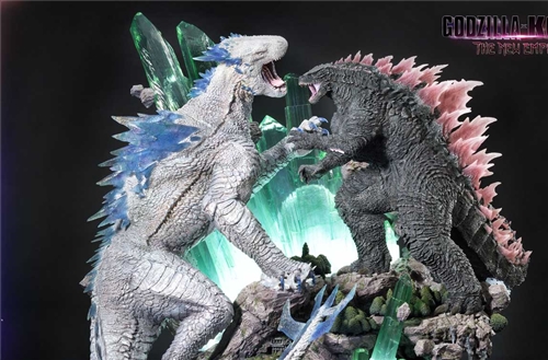 The surface world’s reigning king, Godzilla, and the legendary ice beast, Shimo—this statue captures the climactic clash between these two Titans, embodying their immense scale, raw power, and otherworldly beauty. Locked in a stance of unyielding tension, their confrontation is rendered as symbolically as an ancient mural or a royal crest. Their difference in size has also been faithfully reproduced. The setting has been relocated from Rio de Janeiro, as seen in the film, to the Hollow Earth. Towering cliffs and sky-piercing crystals form a dramatic and dynamic base layout.
