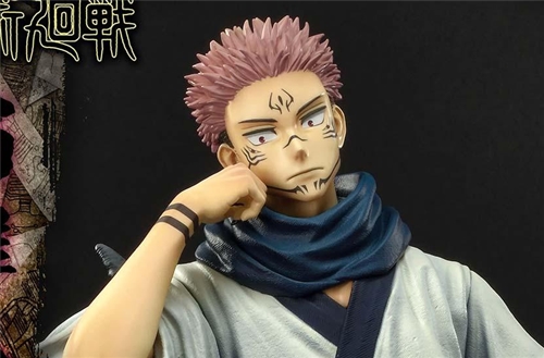 Sitting at a leisurely 13 inches tall, Ryomen Sukuna looks almost bored to death! But that’s the problem when you’re the most powerful demon curse of all time...the challenges come few and far between! However, he’s found a new plaything in Yuji Itadori...through Yuji, he is poised to take over the world, like he attempted a thousand years before. But in the meantime, Sukuna lounges on his throne of skulls and bones, enrobed in a simple kimono, scarf and zori. His tattooed face looks pensive, in an expression pulled straight from the anime. Waiting for the next entertaining chapter of this new development, his face leans on his right arm, resting on the armrest of his demon throne.