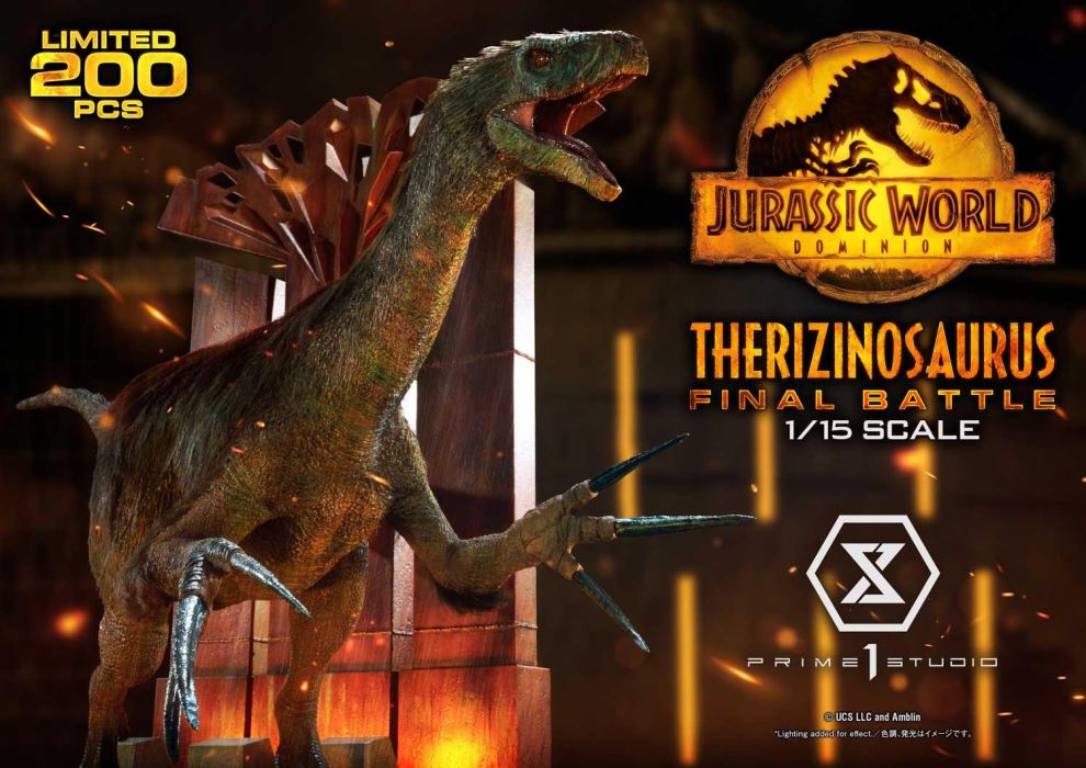 In this epic conclusion to the Jurassic World Trilogy, the Biosyn Sanctuary is set ablaze, Owen Grady and his companions try their best to escape as the final battle of the dinosaurs begins. It comes without a surprise that Prime 1 Studio would choose this climactic battle as the next giant reptile to bring to life. The Therizinosaurus made its fierce and powerful debut in this summer blockbuster, it played a major role in the film, including the final battle, and has left a powerful impression amongst the fans.