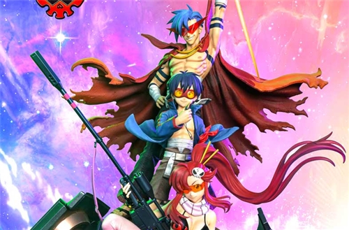 Embark on epic adventure with this mind-bending statue of the iconic trio of Simon, Kamina and Yoko from the beloved anime “Tengen Toppa Gurren Lagann”. Set in a world where humanity is forced to live underground, the series follows the journey of Simon, a timid digger who discovers a mysterious robot known as Lagann. Teaming up with the charismatic and fearless Kamina, Simon set forth on a journey to break free from the subterranean existence and into the vast outer space. Together with an ensemble of friends, they pilot gigantic mechas to defy the tyrannical rule of the Spiral King.
