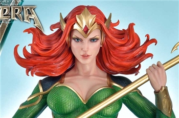Another character who owns magical power to control water and a supporting role to her husband, Aquaman, is the Queen of the Sea, Mera. Prime 1 Studio is proud to introduce the splendid and dynamic Atlantean, MMDC-33: Mera from DC Comics. She has a distinct ability to create hard water objects, as well as superhuman physical strength and ability to adjust underwater environment. She received extensive training in Xebel, and it makes her into a master superheroine. This Museum Masterline statue comes with an iconic designed base with flying fish attached to the wave. The Queen of the Sea measure approximately 29 inches tall while holding her Trident. Aquaman fans, don't leave her if you want to add this beauty into your Atlantis collection!
