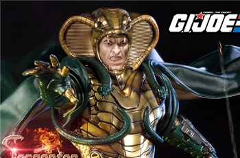 Prime 1 Studio is proud to present PMGJ-03: Serpentor from G.I. JOE. Serpentor is one of the major antagonists of the G.I. Joe series. He serves as the Cobra Emperor of the Cobra organization, and is proven to be very pretentious, egocentric, vindictive, murderous, arrogant, sadistic, merciless, barbaric, and insane. The Cobra Emperor stands on his air chariot's engine turbine at an impressive 32 inches tall.