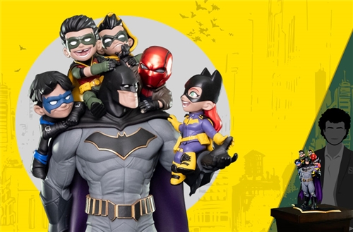 That’s what QMx Creative Director Mohammad "Hawk" Haque endeavored to capture in this figure, titled simply “Family”. He wanted to explore this little discussed, key aspect of the Batman's character: That of a family man. The result is the biggest, most detailed figural diorama QMx has ever made, the first in a new series of large format dioramas called “Q-Master.” Family stands over 15 inches tall and has six different characters included in the diorama. It encompasses the entire history of Batman’s relationships in crime fighting, including all his various proteges.