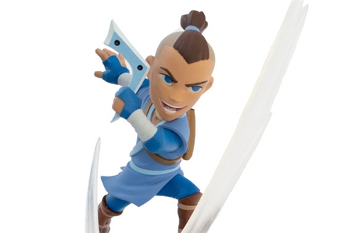 Presented here atop an icy cliffside, Sokka readies his trusty boomerang and a snarky comment before leaping into battle. Complete with Water Tribe robes, boomerang, and a boomerang sheath, Sokka is captured perfectly - down to his signature grin and iconic top-knot.
