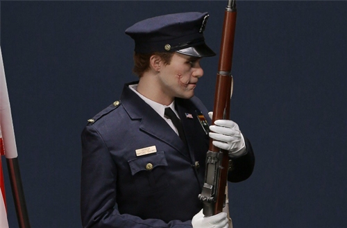In "Batman: The Dark Knight", the Joker pretends to be an honor guard policeman firing a gun, mixing into the memorial ceremony of the police chief Gillian Loeb and taking the opportunity to shoot the mayor. The clown appeared in a dark blue police uniform, making a chilling motion of raising his gun.