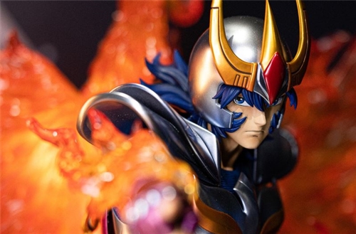 Made in 1/6 scale like the other characters in the collection, the Knight of the Phoenix is depicted posing with the flaming Phoenix behind him, made of semi-transparent resin.