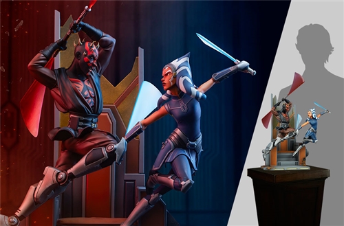 Bring the epic battle from Mandalore to your Star Wars collection with the Ahsoka Tano vs Darth Maul Diorama today.