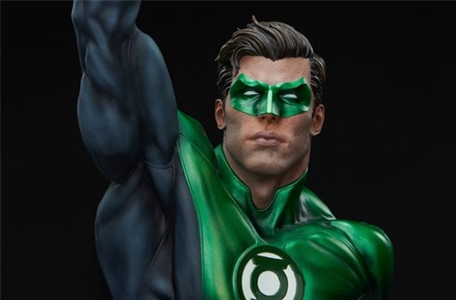The Green Lantern Premium Format Figure measures 34” tall, 11.61” wide, and 11.38” deep and depicts Hal Jordan soaring into the sky in order to save Sector 2814. The hero launches from a base of dark jewel-toned meteor fragments, his feet encased within a swirling, seaglass-green energy construct in the shape of the Green Lantern Corps insignia. The ring he wears on his outstretched hand bears that same crest of cosmic hope. With his Green Lantern ring, Hal forges ahead wielding determination, resolve, and an unwavering commitment to justice.