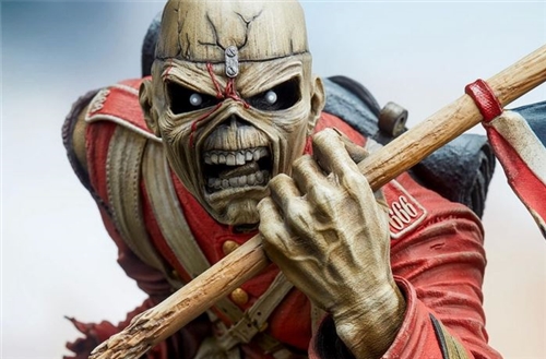 The Iron Maiden: The Trooper Eddie Premium Format Figure takes the incomparable, iconic artwork from Iron Maiden’s 1983 single “The Trooper” and turns it into a fully realized, three-dimensional statue for Iron Maiden fans featuring one of the most iconic mascots in all of music. On this battlefield, no one wins — Eddie measures 19” tall and 18” wide dressed in wartime regalia, clutching a bloodied saber in one hand and a tattered Union Jack in the other. He races forward across a battlefield base littered with fallen comrades, a broken cannon wheel, and the promise of certain death.