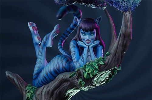 This fully sculpted fantasy collectible is painted in pretty purples, blues, pinks, and greens, giving a unique and unusual twist to the naturalistic elements. Lady Cheshire herself, anthropomorphized to absolute perfection, boasts beautiful azure and navy-blue striped fur as well as raven tresses with rounded bangs. Her piercing eyes and flicking tail are the only indication that mischief may lurk beneath her magical visage. Pair the Lady Cheshire Cat Deluxe Statue with the Alice in Wonderland: Game of Hearts Statue by Sideshow — sold separately — for the ultimate tribute to J. Scott Campbell’s whimsical world.