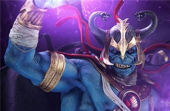 Transformed into his Ever-Living state, the menacing Mumm-Ra has a portrait inspired by his animated appearance, with red eyes and jagged teeth. The Mumm-Ra Statue has a polystone blue body, sculpted with lifelike texture to capture his immense strength. He has sculpted armor elements, including his bandage wraps, golden gauntlets, and snake-themed belt and chains.