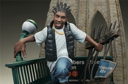 The Ol’ Dirty Bastard Statue measures 13” tall and 11.5” wide, depicting the one-man army rising up triumphantly from the New York subway while the Brooklyn Bridge towers above him. A Brooklyn warrior MC and an icon of hip hop culture, he stomps down hard on the scene, ready to make his mark on the world.
