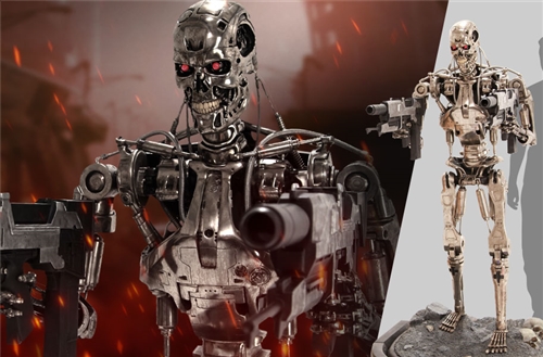 From the sci-fi classic 'Terminator 2: Judgment Day', Sideshow Collectibles is proud to bring Terminator collectors the T-800 Endoskeleton - Version 2.0, standing atop an impressive display base littered with human skulls and debris and is weathered to be more film accurate. Standing over 6 feet tall, the T-800 Endoskeleton is high quality polystone, fiberglass, metals and other materials, complete with light-up eye features (power cord/plug-in). The T-800 Endoskeleton - Version 2.0 is a stunning and imposing piece, sure to become the centerpiece to any collection or display.