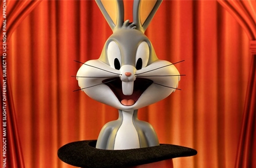 This game is about 30 cm tall. It made the popular character "Bunny Bunny" in "Yi Yi Tong" into a funny shape that jumped out of a magic hat. The shape of the face of the rabbit, the long pointed ears and the hair on the top of the head are meticulously shaped. The cute front teeth are also highly reproduced, and the dazzling cannon sunglasses with the words BUGS BUNNY are attached. On the body; on the other hand, the magic hat part is made of resin material and flocking technology, and decorated with red ribbon, has a good texture and is very classic.