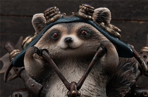 The painting and styling details of this work are also quite wonderful. The fur texture of the raccoon body surface, the biologically gradual color, the heavy metal feeling of the motorcycle parts and the rusting of the exhaust pipe are all very realistic, which is worth mentioning. Yes, raccoons can also show off their goggles and show their cute appearance with two round eyes! ! Coupled with the black base studded with golden nameplates, the display is really amazing~!