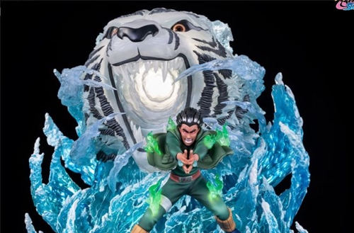 Made of resin and in 1/8 scale for a total height of about 40 cm , Gai is depicted as during the battle with Kisame, while using the Daytime Tiger technique .