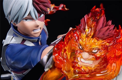 With a height of 34 cm he is sculpted while making use of both his Quirks , that of frost and that of fire. Depicted in a snappy pose as he advances with a determined and combative gaze. You can find it available on the Tsume website at the price of 324 € . Release early 2023 .