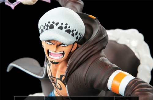 Sculpted in 1/6 scale by 43cm tall , this resin statue is based on the Dressrosa saga and portrays Law as he battles Doflamingo in the series' iconic story arc.