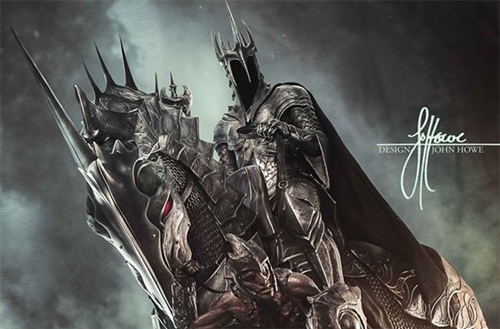 The 1/4 scale resin statue will measure 62cm tall in total, showing the Nazgul leader riding a dark steed, accompanied by 2 Orcs of Mordor , as in an illustration by the aforementioned artist.
