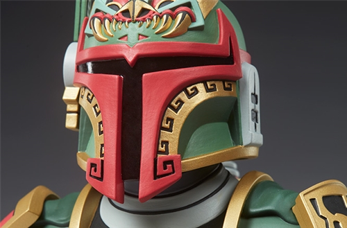 No disintegrations, all dynamite. Urban Aztec infiltrates a galaxy far, far away with the Boba Fett™ Bust by artist Jesse Hernandez, blending Mayan and Mandalorian influences into badass bounty hunter.