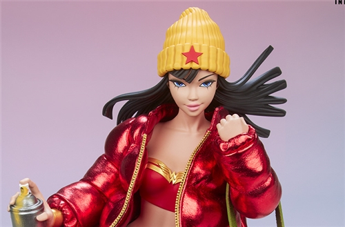 The Hype Girl (Wonder Woman) Designer Collectible Statue by artist Mimi Yoon is a streetwear warrior with a fierce fit and her own colorful set of custom kicks. Infused with Yoon’s distinctive eye for street culture and feminine empowerment, this collectible mixed media statue is extremely limited to an edition of only 300 pieces.
