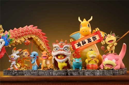 Configuration: Lucky Meowth + Pikachu + Bulbasaur + Charmander + Squirtle + Fire Monkey + Kodak Duck + Dragonite + Flame Rabbit + Slowpoke + Lion Dance + Dragon Dance + Interchangeable Lucky Beast 4 pairs of couplets