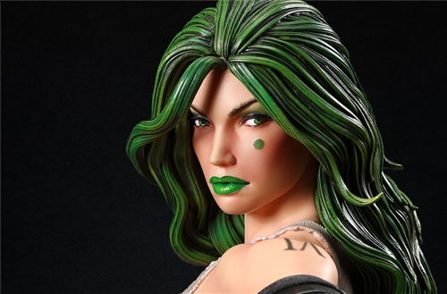 No expense was spared in the creation of her peripherals either. From the futuristic dual weaponry and ammo belt to the amalgamated base that represents the cybernetic decadence found in the pages of the comic, everything was crafted with the utmost attention so as to bring this cybernetic assassin to life.