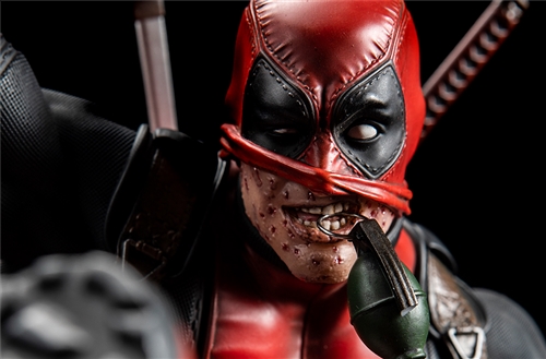 Two (2) Headsculpt - 1 featuring his full Deadpool mask, 1 with his mask half rolled up, grenade clenched between his teeth.