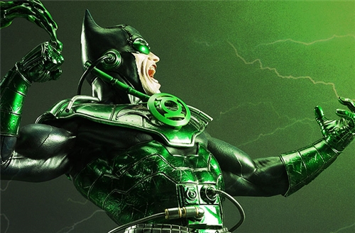 This statue features The Dawnbreaker brandishing his power ring while standing on top of nightmarish constructs derived from the dark void of his mind while in an attacking pose, poised for battle. There are 2 head switch outs, one with an open jaw to showcase The Dawnbreaker mid-scream while lunging forward and one with a closed jaw, featuring a snarling face.