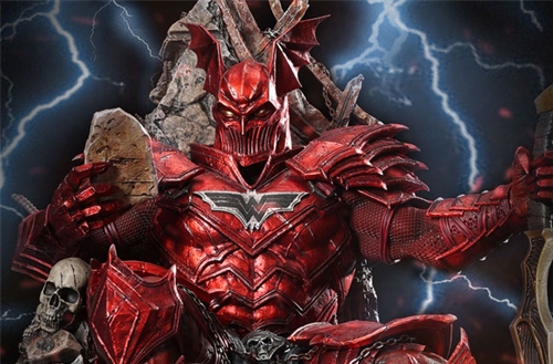 The Merciless comes in 2 versions, each spotting a colour variation of his armour. Ver A features the blue armour while Ver B features the red colour variation, which is also the first and initial colour scheme created by Riccardo Federici (Riccardo designed the concept for The Merciless in the Dark Nights: Metal comics. He also designed The Merciless concept for this piece)