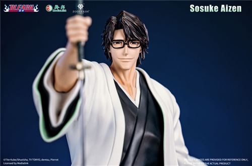 Brand: Zodiakos Studio Product name: Sosuke Aizen Licensed ES: 299 Scale: 1:6 Size: H37 W34 D37CM Material: PU+Polystone+Metal Estimated release time: Q3-Q4 2025