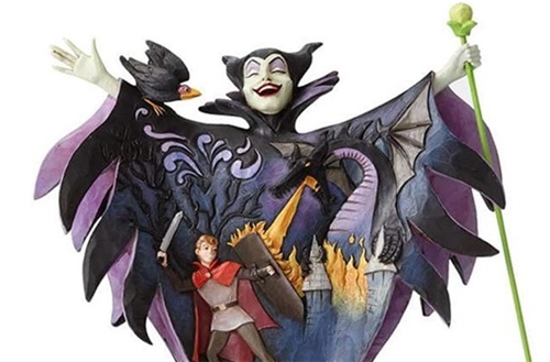 Product description in English: Malevolent Madness. Maleficent Figurine. Part of the Disney Traditions collection by Jim Shore. Made from stone resin. Includes original manufacturers box and packaging. Made by Enesco. Disney understands that you can't have a great story without a great . villain Jim Shore captures compelling evil of Maleficent with a breathtaking scene of the Prince fighting against all odds to rescue sleeping Beauty .. Officially licensed by Disney.