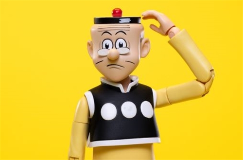 - Classic accessories: The figure comes with Old Master Q's favorite comic book, a bright red bouquet, and his companion - an adorable puppy.