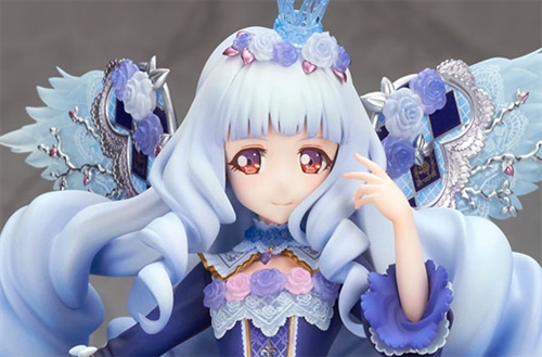 The costume design, including the frills, lace, and roses are carefully sculpted.