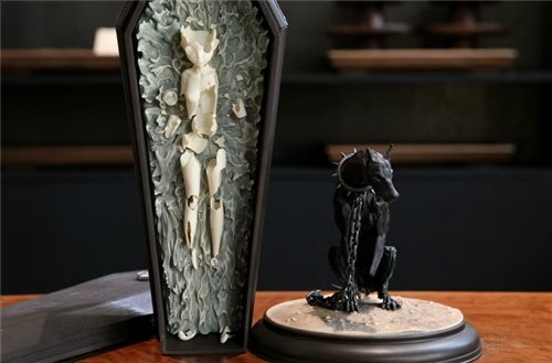 Product Name: Black dog pulling coffin statue