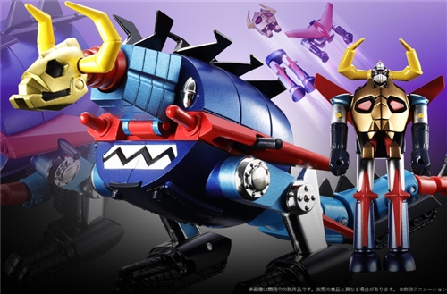 The Daiku Maryu measures approximately 180 mm in length while the Gaiking reaches a height of approximately 70 mm and the whole thing is made of ABS, PVC and die-cast parts, with the main body of the Daiku Maryu, the detachable Gaiking, the three mini units Bazoler, Skyler and Nessar and six missiles included.