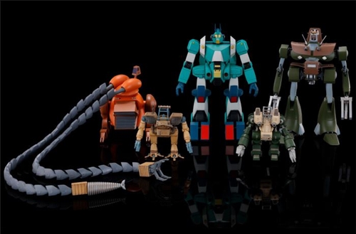 From "Battle Mecha Xabungle", various 1/144 scale Walker machines are now available as a set. Five types of kits, Walker Gallier/Gallop Type/Sendbead Type/Caprico Type/Trad 11 Type, are revived with their original memories intact. Delivered in a full color package that includes a new mechanical file and combines the original packaging.