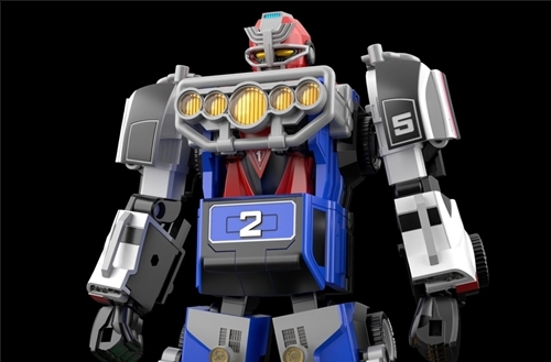 RV Robots are giant robots formed by the "Gekzoku Fusion" of five RV-type combat vehicles (red, blue, green, yellow, and pink) piloted by the five Carrangers in the series. They are used to fight against the gigantic space biker tribe "Bosoko." RV Robots not only possess immense strength, but their various flashy moves also incorporate the style of high-speed vehicle movement. They can glide at high speeds on land, unleashing powerful kicks with their legs, or unleash their ultimate attack, the "RV Sword Gekzoku Slash," while wielding the RV Sword and spinning at high speed.
