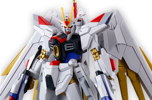 "Mighty Strike Freedom Gundam" is made into HG. Equipped with the internal structure ``SEED Action System'' that specializes in reproducing impressive action poses from ``Mobile Suit Gundam SEED Series''. The connecting axes of the hip joints of both legs can swing up and down individually, allowing for poses where the toes are stretched out and aligned. The gold part uses real metallic gloss injection, a material that enhances the metallic luster. The wing parts are individually movable over a wide range. Furthermore, the white wing can slide in 8 places to reproduce the unfolded state. 3D metallic stickers are used for luminescent expression. "Proud Defender" can be removed and displayed alone. The blade parts of the included actual sword "Futunomitama" have two types of surface finishes to express different textures. The released state of the forehead cannon can be reproduced by replacing parts. The waist rail gun can be expanded to reproduce the simultaneous firing situation. In addition to a wide variety of armaments such as beam sabers and beam shields, it also comes with a grip that allows you to recreate the connected state of the beam sabers.