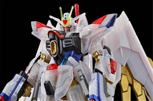 The Gunpla "HG 1/144 Mighty Strike Freedom Gundam" from "Mobile Suit Gundam SEED FREEDOM" is now available in clear color. It is equipped with the "SEED Action System", an internal structure specialized for recreating the impressive action poses from the "Mobile Suit Gundam SEED" series. The gold parts are made of real metallic gloss injection, a material that enhances the metallic luster. The "Proud Defender" can be removed and displayed on its own. In addition to a wide range of weapons such as beam sabers and beam shields, it also comes with a grip that can recreate the connected state of the beam sabers.