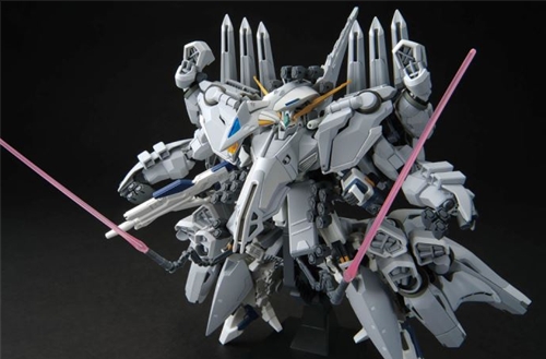 The "HG 1/144 Arios" recreates this super-large mobile suit using completely redesigned parts. Once completed, the kit stands 25 cm tall, even larger than the ΞGundam. It utilizes highly detailed gray-toned molded parts to create a monstrous outer armor design, various sensor missile pods, and 20 parallel thrusters. The distinctive ring-shaped "plasma reactor" is made with transparent parts. Through the transformation mechanisms of various parts of the machine, the complex-shaped Arios can transform into a flight mode that reduces air resistance.