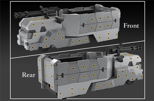 The transport vehicle "Dreadnaught Dragon" is an armed truck used by the protagonist Ren Misawa to carry the special machine "Koying Prototype". Compared with the "extra large armored special transport vehicle" used by Yatagarasu in the past "Kingdom Fighter" Realistic design, the shape of Dreadnought is basically made for model toys. It has incredibly thick outer armor, so many armed external hard points that make people densely scared, and can be equipped with Gatling guns, smoke grenade launchers, etc. There are various types of weapons on the outside of the car body.