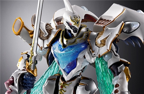 The beautiful design is further enhanced by the complex overlapping of granular white. In addition, to further enhance the statue's standing pose, new wings have been added that reflect the biological impression of a powerful beast. The effect parts covering the blade include newly sculpted large effect parts that are even more powerful. The aura power worthy of the legendary Aura Battler is manifested.