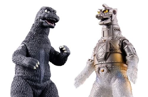 The "Movie Monster Series" is a series of soft vinyl figures that feature realistically sculpted and painted monsters from past Godzilla films. From this series comes a set of two figures: the "Fake Godzilla," a Godzilla lookalike from "Godzilla vs. Mechagodzilla," and the "Mechagodzilla (1974) Appearance Scene Image Ver.", which depicts the moment Mechagodzilla, his true form, first appeared!