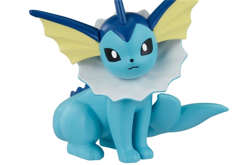 "Pokémon Quick Assembly Model Kit!! 27 Vaporeon" is a model kit that is very suitable for beginners. The kit is made with a very small number of white, blue, black... parts and stickers. The colors of the eyes, nose and mouth are reproduced using the molded colors of the parts. You can easily and quickly build an adorable Vaporeon with a beautiful body and fish tail that is about 9.7 cm tall!